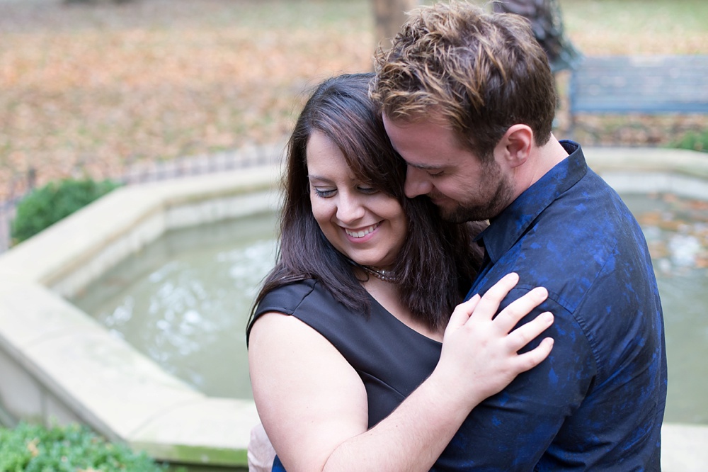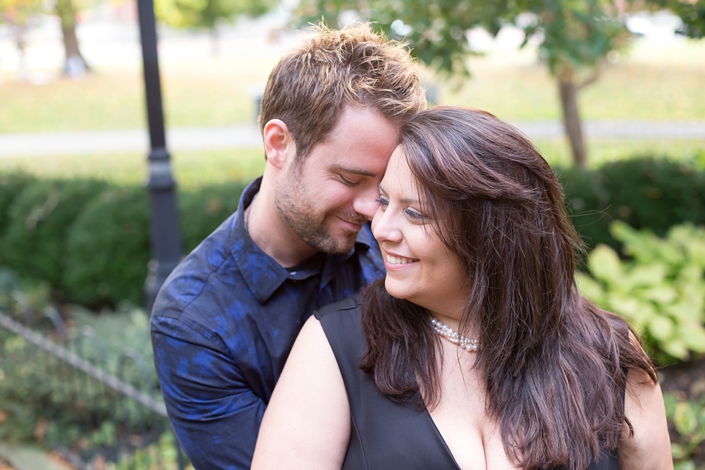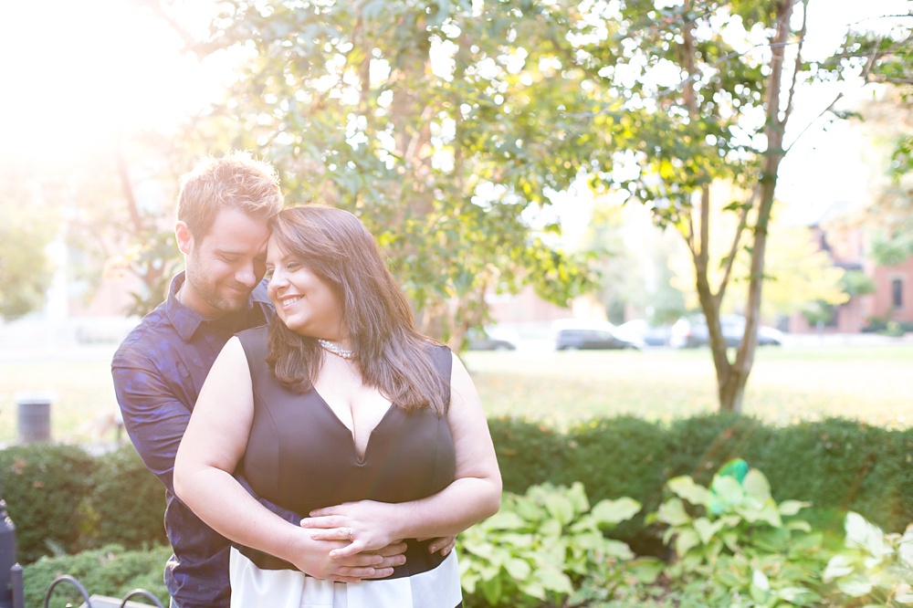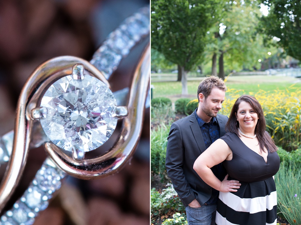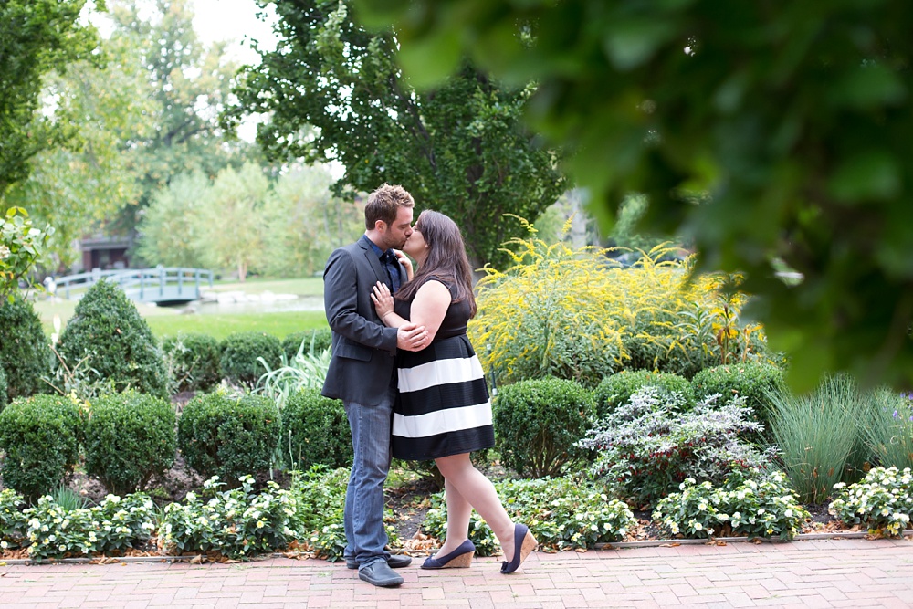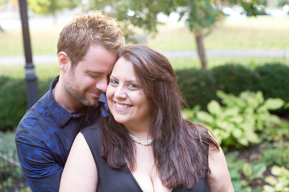 As soon as I stepped out of my car and saw Jessica’s enthusiastic wave from a few parking spaces away, I knew that this engagement session was going to be a fun one! Jessica and Joe currently live in New York and we had made time for their engagement session on their visit back to Columbus for a few days. I was so excited that we had such beautiful weather! It was the perfect summery/fall evening in October, and we just chatted along like old friends as we moved from spot to spot. Their love is just infectious and precious to witness- all Joe has to do is look at Jessica and she melts into a pile of giggles. Every facial expression you see in their photos is so genuine and that’s why I LOVE them! I hope you enjoy looking through Jessica & Joe’s engagement session that took us from North Bank to Schiller Park to the Book Loft. What a magical evening! I can’t WAIT for their April 2016 wedding. It’s going to be amazing!!! 🙂