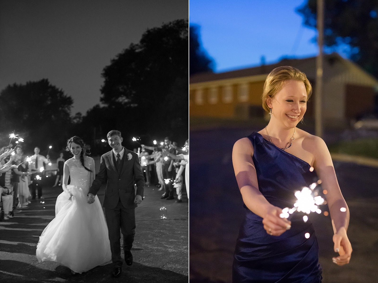 Jeff and Melinda’s wedding was the perfect combination of traditional + uniquely crafted to fit their personalities exactly. The wedding was on a Friday night and even though the ceremony didn’t start until seven, Jeff and Melinda exited their reception through a tunnel of sparklers by 9:30! I loved it because I’ve photographed a few weddings where the couple dreams of a grand exit but sometimes doesn’t experience it because so many guests have already left by the time the party is winding down. But because Melinda and Jeff’s reception was short and sweet (dinner, toasts, and cake– what’s sweeter than that?!), every guest experienced their wedding day from start to finish. The entire church came out and filled the pews to celebrate with this amazing couple, and instead of having a huge bridal party with lots of frills, they chose to have just a maid of honor and best man– but still set aside time to take photos with their closest friends!