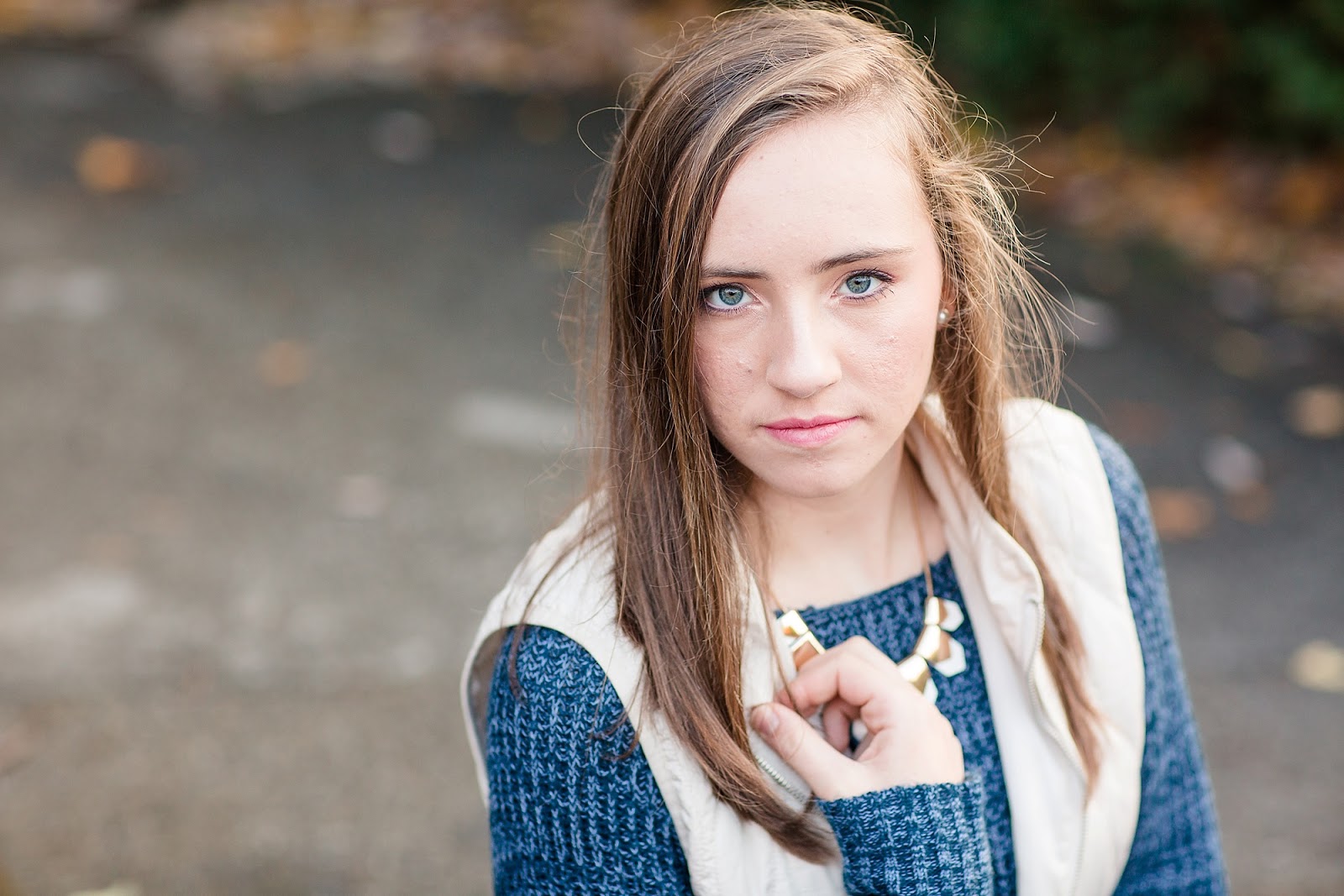 Aren’t these girls gorgeous?!?? I absolutely loved being able to photograph these amazing ladies. If you haven’t already seen part one of this shoot, click here! If you have, or if you just love cozy sweaters and all things fall, keep scrolling! We styled this cozy autumn shoot with scarves, leggings, vests, and all manner of warm snuggly things. A huge thank you to Natalie for doing makeup for my three spokesmodels who participated in this shoot! As fall departs and transitions into cold days marked by frosty windows and crisp sunlight, here’s one final tribute to fall. Enjoy my favorite shots of these beautiful members of the class of 2017!