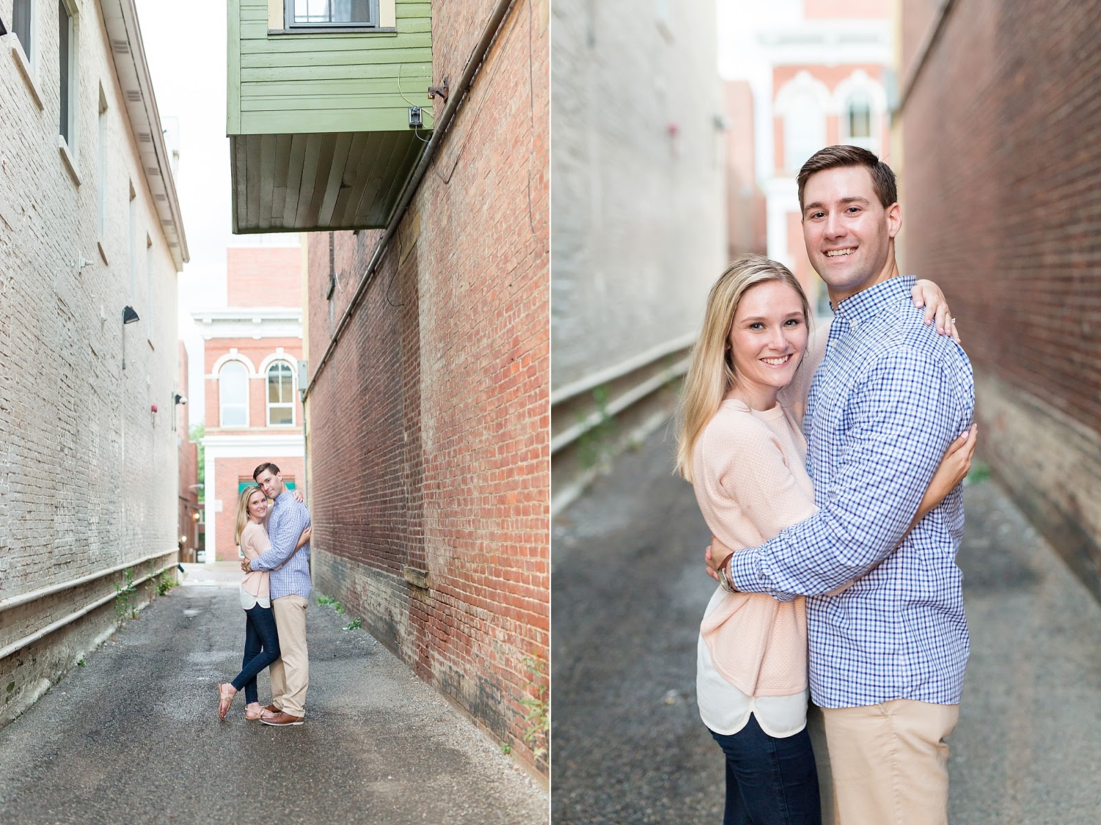 I had SO much fun exploring Athens with Kelly and Greg! They met and started their relationship at Ohio University, so it was only fitting that their engagement session brought them back to where it all began. We explored some of their favorite spots around campus, and ended in an alley right next to Kelly’s old apartment! Despite a few unexpected showers, the weather was beautiful and we even managed to capture a bit of that golden glow right at the very beginning and end of their session.